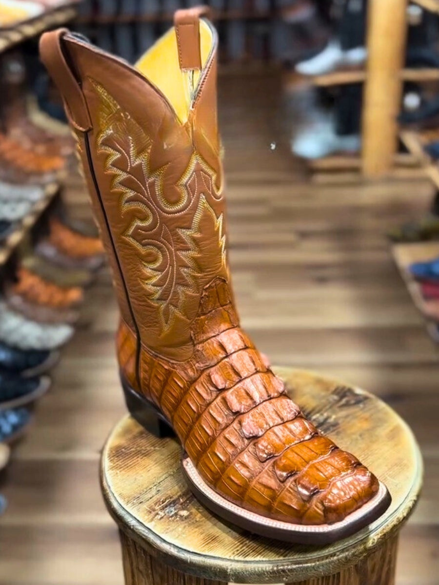 Nile Croc Wide Tail Printed Boots in Color "Cognac"$74.99 USD$149.00 USD