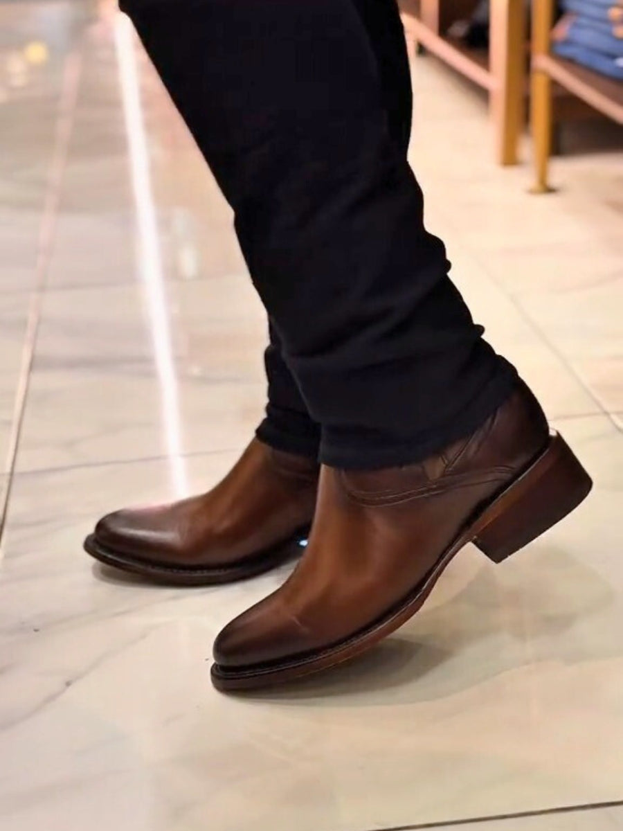 Men's Cowboy Boots Brown Crocodile Genuine Leather Round Oval Boots$69.99 USD$118.00 USD