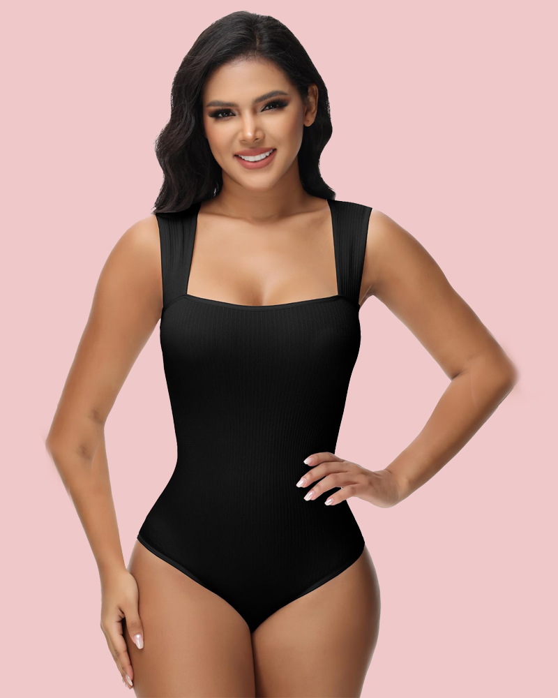 Women's Sexy Ribbed Strappy Square Neck Sleeveless Tummy Control Tank Tops Bodysuits$25.68 USD$35.00 USD