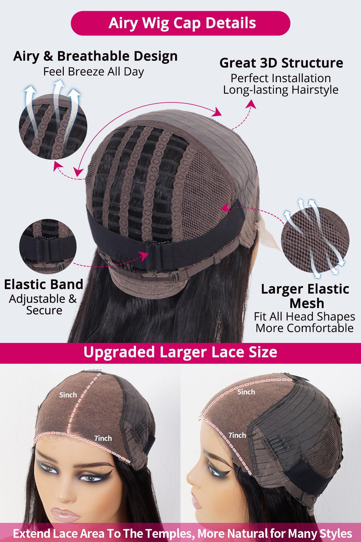 ★ Upgraded Airy & Breathable Wig Cap.