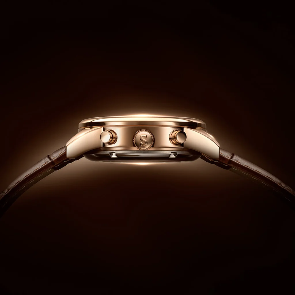 Featuring a Day-Night Indicator, Day and Date displays, and a Business Quarter function, the Complexity Automatic offers a well-balanced presentation of these complications. The dial, set against a textured ivory white guilloche background, ensures clarity and subtle sophistication. The 210-part 20-jewel automatic movement receives additional calibration and adjustment for optimal reliability and precision, powering its performance.