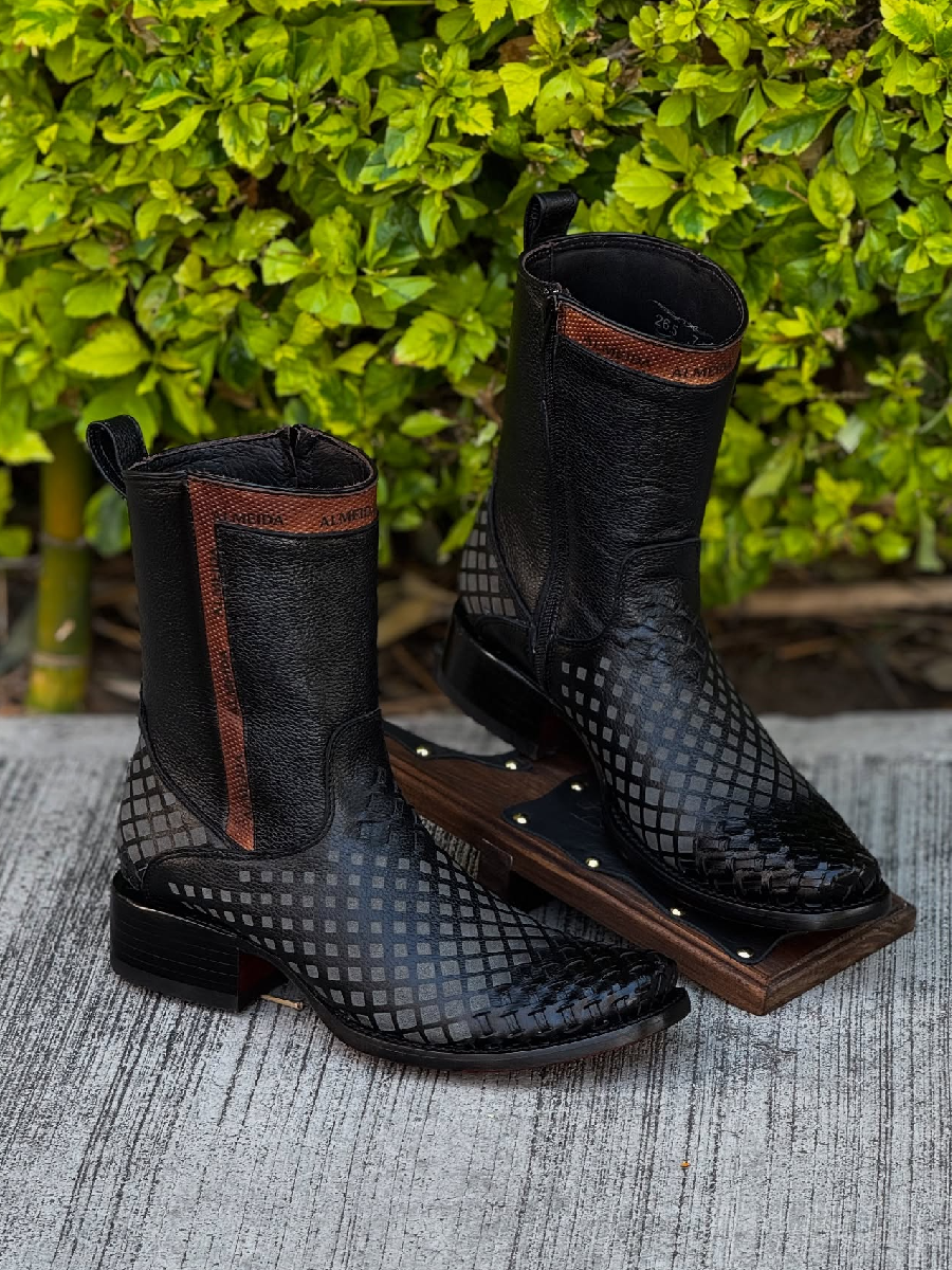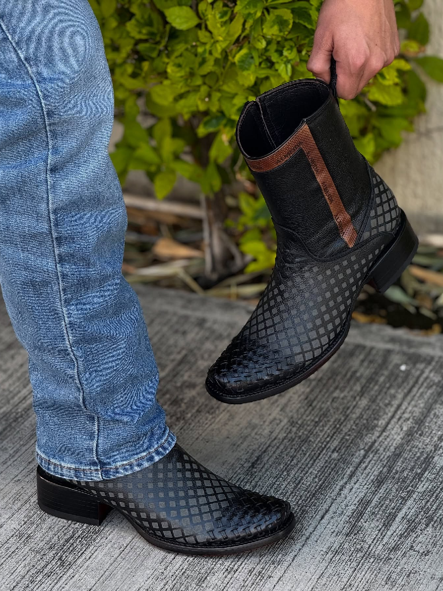 Hand-Woven Cowhide Zipper Cowboy Boots