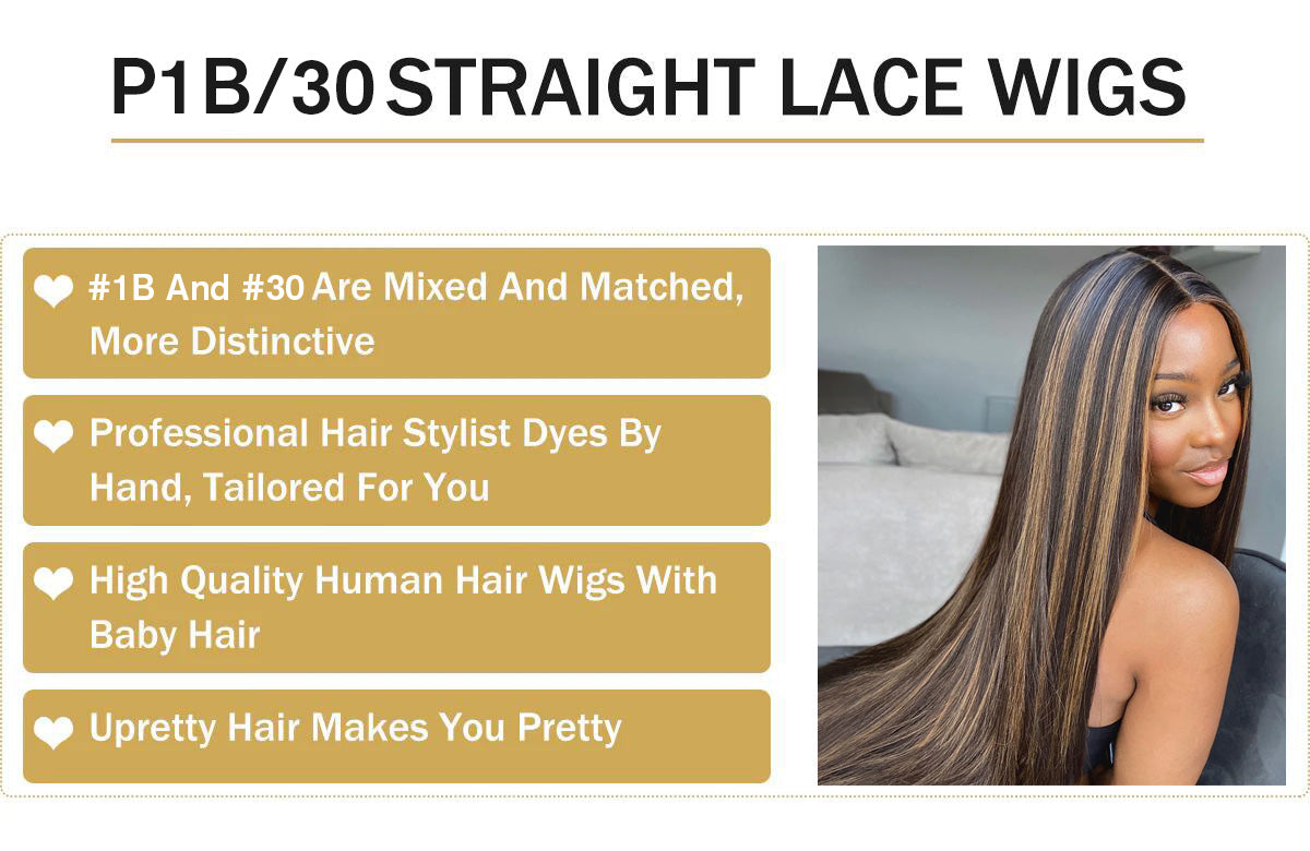 Straight Hair Highlight P1B/30 Color Glueless 6x5 13x4 HD Lace Wigs