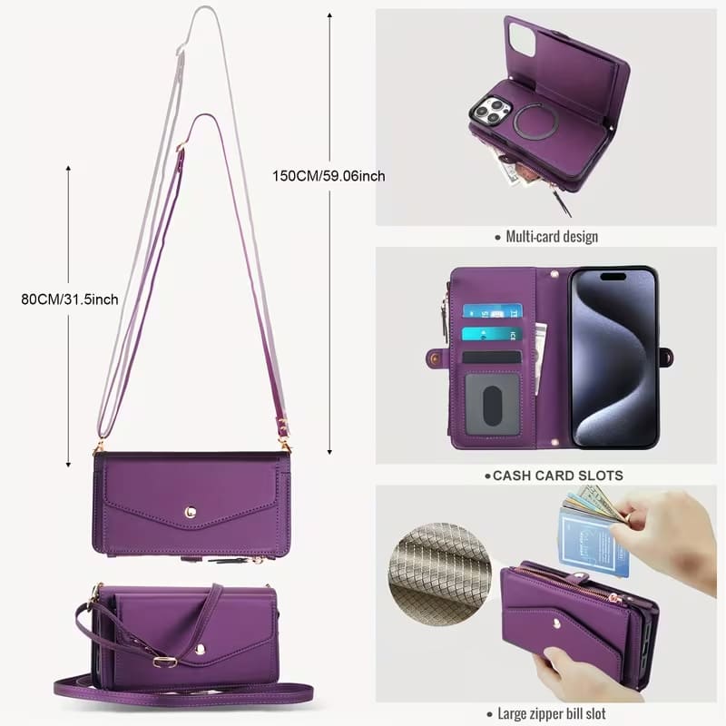 This women's wallet phone case is not only beautiful and elegant in design, but also highly practical. Its wireless charging, RFID card slot protection, and crossbody design solve many problems you encounter when going out: whether for work, shopping, or traveling, it seamlessly integrates into your life, allowing you to easily carry your phone, cards, and cash – all in a stylish and secure design.