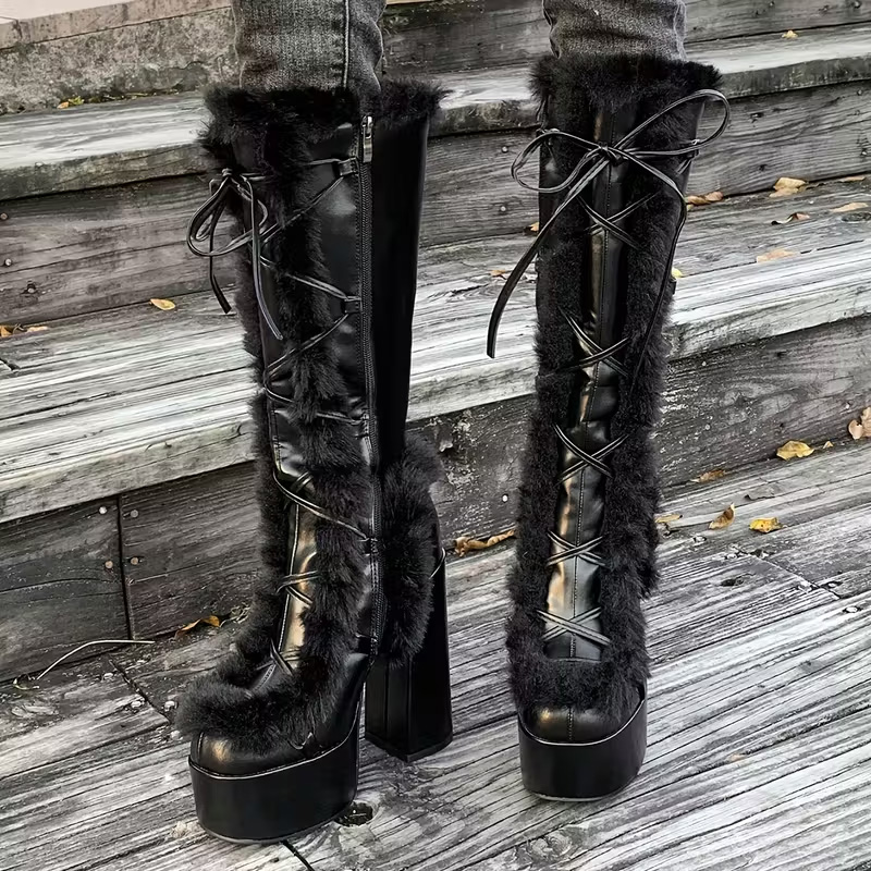 The cold winter calls for both warmth and moments to showcase your personal style! These platform, high-heeled, fur-lined mid-calf boots are the perfect choice for winter outfits. Combining the elegance of a high heel with the comfort of a thick sole, and featuring a soft fur design, they keep you warm while maintaining a sophisticated and sexy look. Whether for everyday outings, dates, or parties, they'll make you the center of attention.
