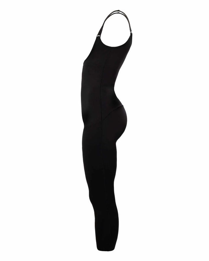Our Slimming Jumpsuit is the perfect solution for all-over smoothing and sculpting the back, tummy, hips, waist, and legs while also giving a subtle lifting to the butt and breast. Features a mid to high level compression, an open bust so you can wear your favorite bra and a confortable and discrete crotch opening for restroom use.