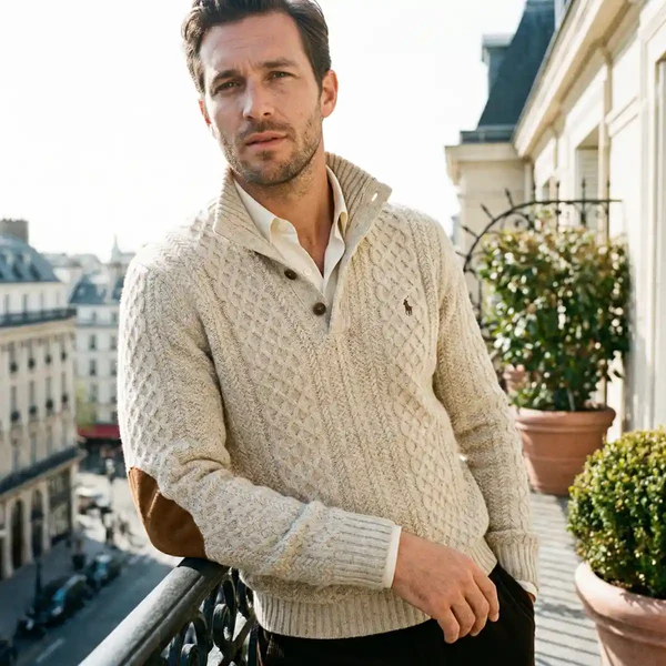 The Classic High Collar Knit Pullover is a masterclass in 'Quiet Luxury.' Designed for the modern man who values presence over volume, this sweater features a structured high stand collar that frames the jawline and shoulders, instantly creating a more masculine, commanding silhouette. Crafted from a premium, high-density cotton blend, it offers the substantial feel of a heritage knit without the itch or bulk of traditional wool. The signature quarter-button placket adds a vintage yet timeless touch, allowing for versatile styling—buttoned up for refined authority, or open for a relaxed, approachable look. Finished with ribbed cuffs and a tapered hem, it stays in place throughout the day, whether you're leading a meeting or enjoying a weekend drive.