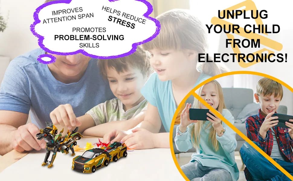 Whether it's speeding around as a car or transforming into a powerful dinosaur for battle, it brings children endless fun and creative possibilities! Buy now and enrich your child's play world! ✨With this transforming dinosaur toy, let your child's creativity soar and ignite endless adventure and fun! 🎉