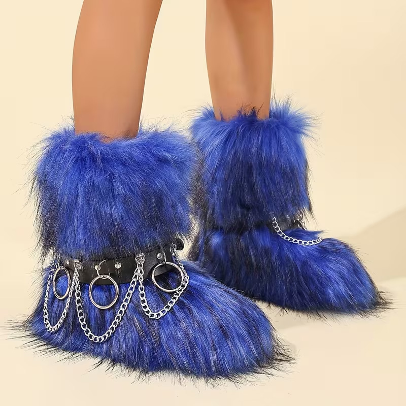 Who says you can only dress warmly and not stylishly in the cold winter? These women's winter chain-strap snow boots break the design limitations of traditional winter boots, perfectly combining warmth and fashion. With a fleece lining, thick sole, non-slip mid-calf style, and trendy chain embellishments, these boots allow you to exude elegance and individuality whether traveling or wearing them casually.