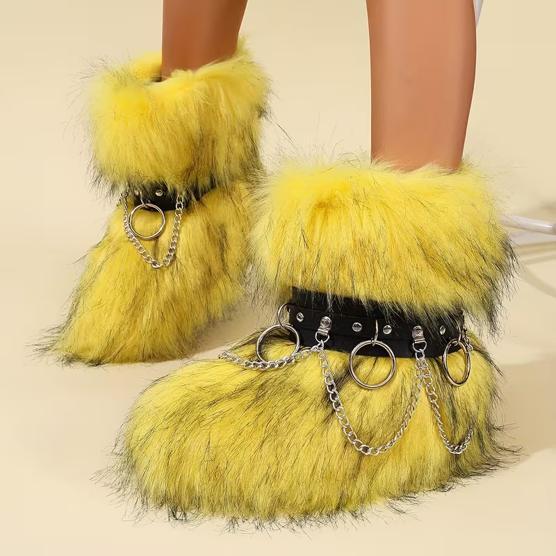 Choose these stylish new women's winter chain-strap snow boots for the perfect winter outfit experience! The comfortable fleece lining, fashionable chain embellishments, and excellent warmth and slip resistance ensure you step with confidence and charm. Make these boots the highlight of your winter wardrobe, keeping you at the forefront of fashion and warm all season long! Make these stylish snow boots an essential item for your winter wardrobe, allowing you to go further and dress more confidently!